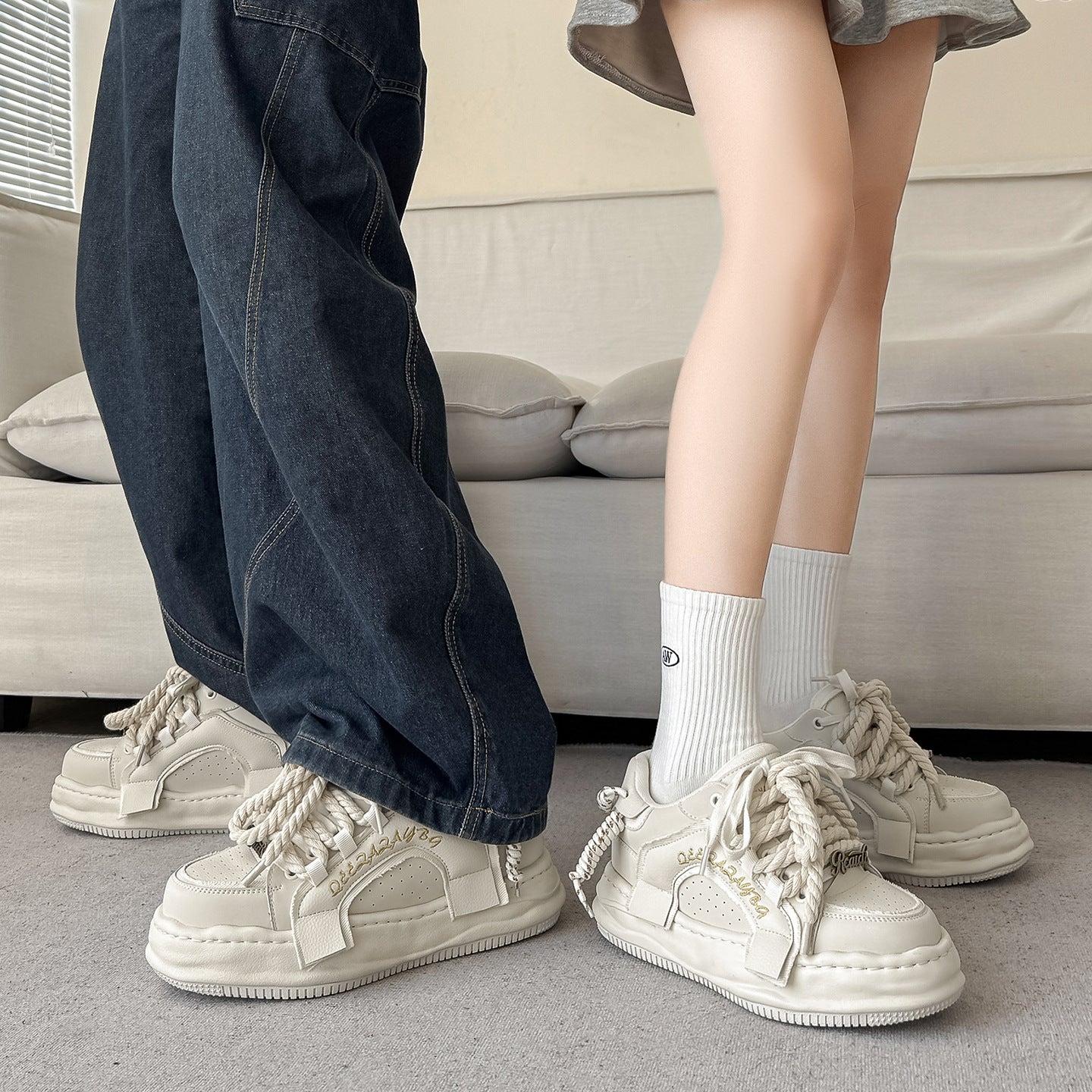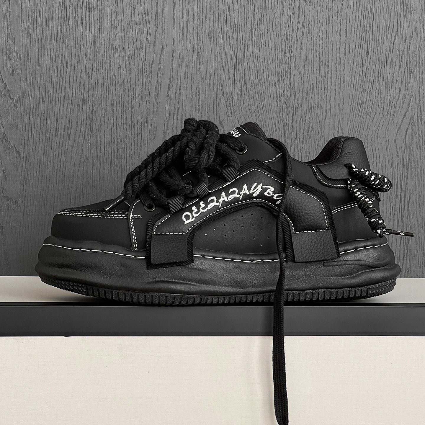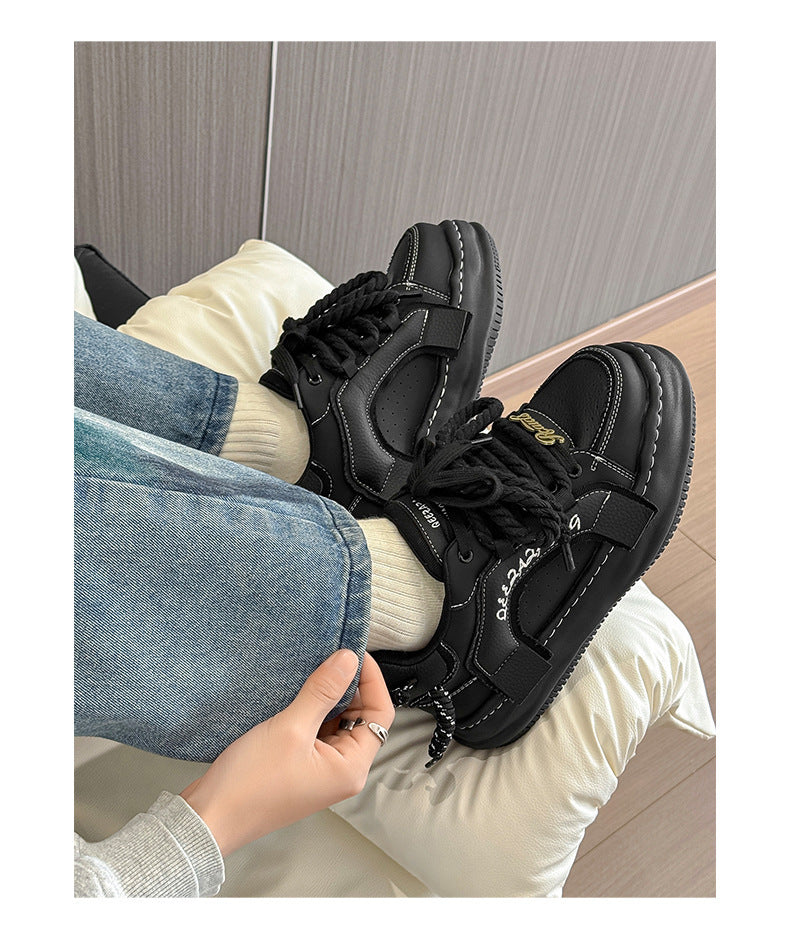 Thick-Soled Black Braided Sports Sneakers